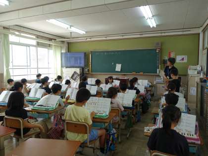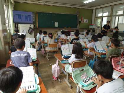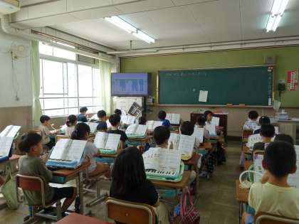 2拍子を感じ取りながら「山のポルカ」の旋律を鍵盤ハーモニカで演奏しました。