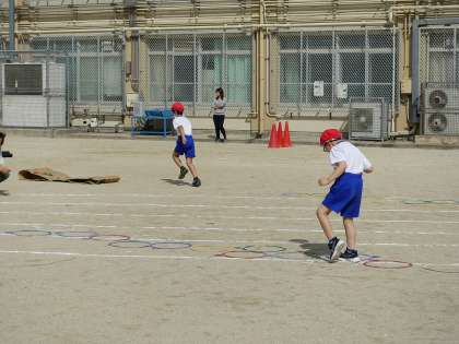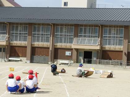運動場で行いました。