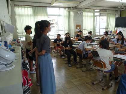 旋律の音の上がり下がりやリズムの特徴、強さの変化を感じ取りながら「われは海の子」を歌いました。
