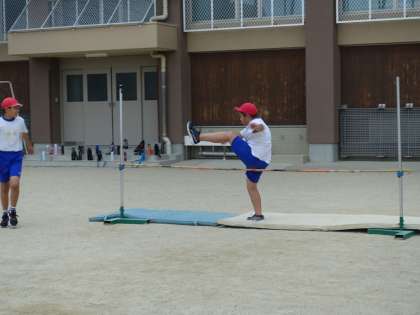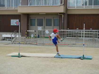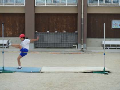 3〜5歩の助走で跳び、はさみ跳びのような跳び方に慣れました。