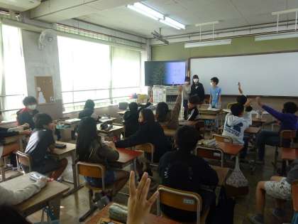 学習係はパワーポイントを使ってクイズをしています。
