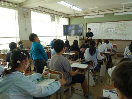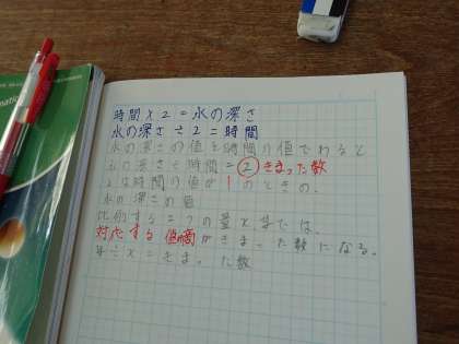 表を縦に見て、比例する2つの量の対応する値の関係を調べました。