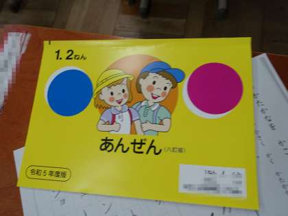 1年生は、安全ノートを使って、不審者対策について話し合いました。