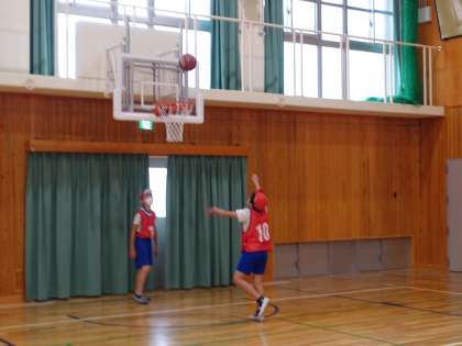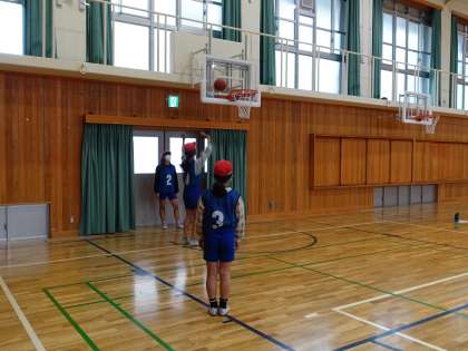 シュートにつながるようなすばやくタイミングのよい動きや作戦を工夫しながら,相手チームに挑戦して楽しんでいます。