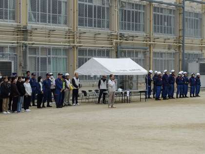 災害発生を想定して、実施されました。当日は、京都先端科学大学の皆様にもご協力いただきました。