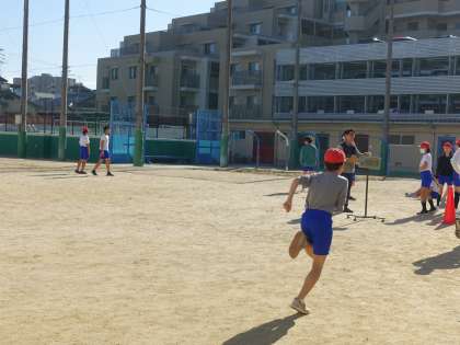 運動強度を確かめながら、自己の体の状態や体力に合わせてジョギングをしました。