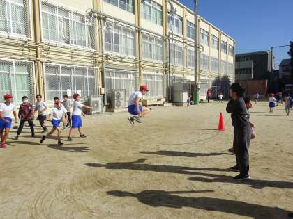 中間休みに何げなく大縄をし始めました。