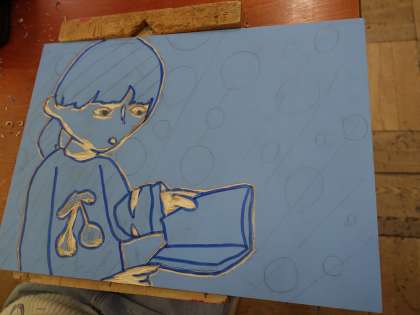 彫った形を刷って、さらに彫り足すなどして表現を深めました。