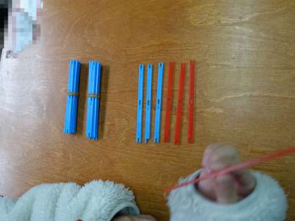 絵を見て数え棒の数を数字でかいたり、数字を見て数え棒を並べたりして考えました。