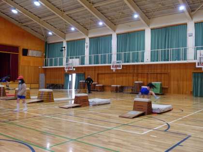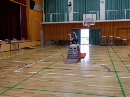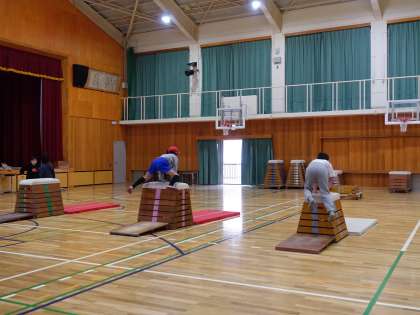 今できる技で、高さの違う跳び箱に挑戦しました。