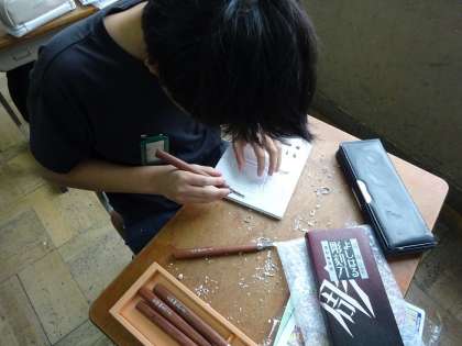 彫刻刀で彫っていきます。