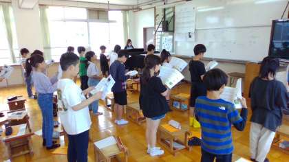 音楽科「歌声をひびかせて心をつなげよう」では、「こいのぼり」を歌っています。全員の声がそろうよう頑張っています。
