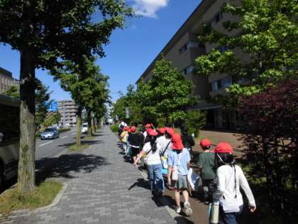 出かけました。今日は学校の西の方をたんけんしてきました。コスモ公園で方位磁針を使って方位を確認したあと、天神川通→太秦天神川駅→葛野大路通とまわってきました。たんけんしたことは授業で白地図にまとめていきます。次は北と東のコースをたんけんする予定です。暑いので大きめの水筒と赤白帽子のご用意をよろしくお願いします。
