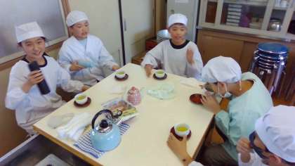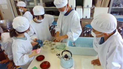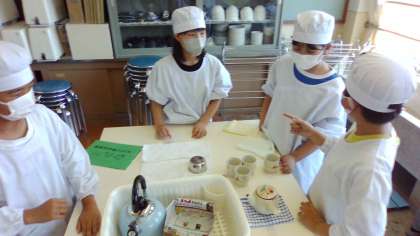 家庭科「私の生活、大発見!」では、正しいコンロの使い方と美味しいお茶のいれ方を学び、協力して挑戦しました。
