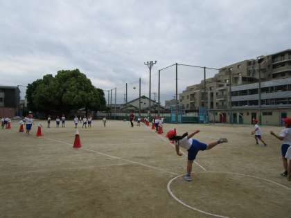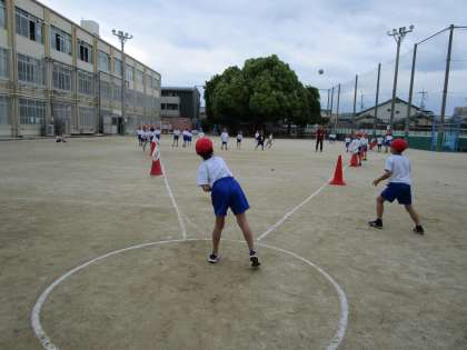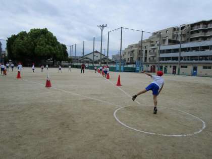 できるだけ遠くを目指し、「エイッ!」と投げました。