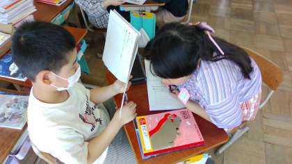 国語科「銀色の裏地」では、主人公のなりきり作文を交流しました。