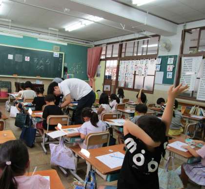 各自で書く練習をしたら、先生に見てもらいます。