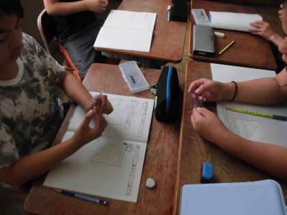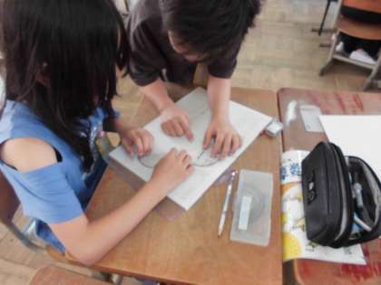 分度器の使い方を工夫し、話し合いながら角の大きさを求めました。