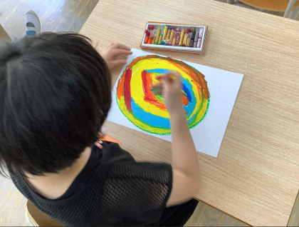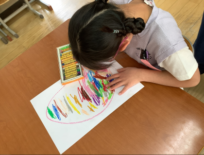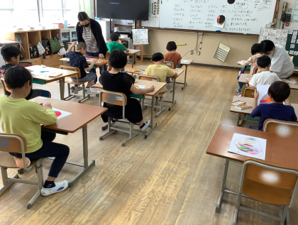 図画工作の時間に、「なにがでてくるかな?」をテーマに、
