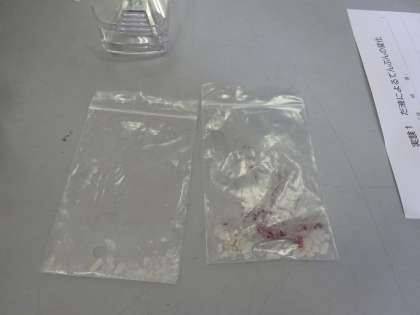 でんぷんが口の中で変化しているかを調べます。