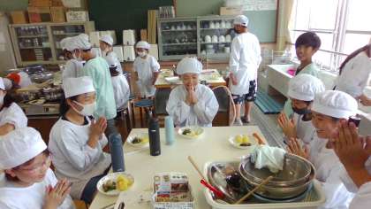 家庭科「ゆでる調理でおいしさ発見」では、ゆでいもとおひたしの調理実習を行いました。