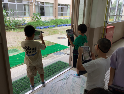 校内を歩いて、写真を撮って、その写真に編集機能を使って