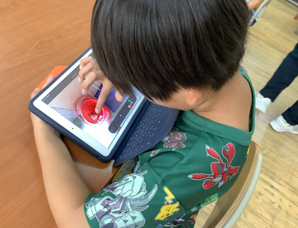 ひまわり学級では、ひとり1台、iPadを持って学習しています。