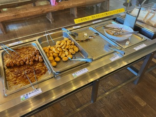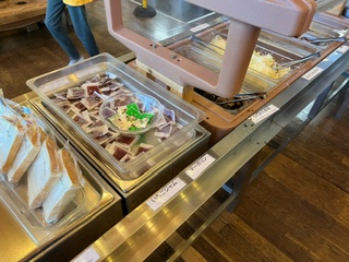 食堂での最後の食事です。パンやご飯、ナゲット、鯖の塩焼き等があります。