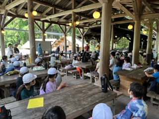 所員の先生のお話を聞き、野外炊事が始まります。