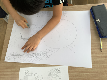みんなあれこれ言いながらワイワイ描いていますよ!