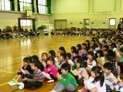 平成24年度に入って第1回目のジョイフル集会が,5月15日3校時に体育館で行われました。全校で歌声と心を合わせて「夢の世界を」を歌いました。高学年は2部合唱ですばらしいハーモニーをかもし出し,四百名の透き通るような美しい歌声は,学校中に響き渡りました。全校合唱のあと,いろいろなリズムを楽しみながらアンパンマンの歌を手拍子しました。(^o^)