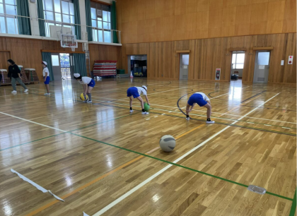 体育ではボールを使った学習を始めました。