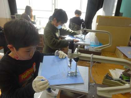 同時に彫刻刀で彫る作業も進めています。