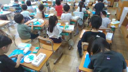 図画工作「ねんどで ごちそう なにつくろう?」では、食べたいなと思う食べ物を粘土で表現しました。