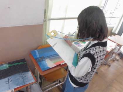 作品は、教室後ろに掲示しています。