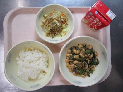 今日の給食にも、大豆・にんじん・細切こんぶ