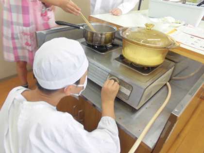 包丁で切ったり、火の加減を調整したりしながら班で協力しながら実習に取り組む素敵な姿がたくさん見られました。