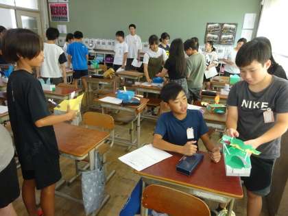 みんなでお互いの作品を見合っていると