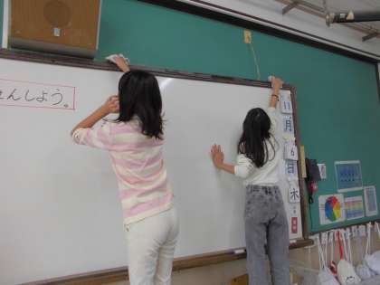 この日は、教室内のごみやよごれを探しながら、それらを清潔にする計画を立て、実践しました。