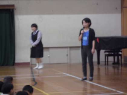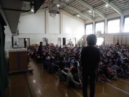 朝会で読み聞かせの会が行われました。学校図書館運営支援員の藤澤先生に「まっくろネリノ」というお話を読み聞かせをしていただき,子どもたちは熱心にお話に耳を傾けていました。