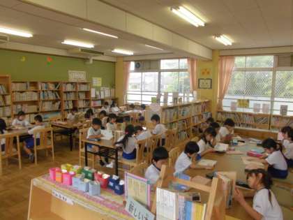 図書館運営支援員による授業や,各教科や休み時間における図書館利用など,学校教育全体を通じて子どもたちの読書活動を進めています。