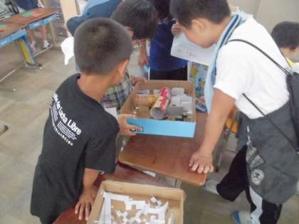 本日,1・2・3校時で「くすのき祭り」を行いました。ボーリング,的あて,輪投げ,まちがい探し,福笑い,クイズなど,いろいろなお店が開かれていました。「先生。うちにも来てください!」「暑いけど楽しい!」といった声が聞こえてきました。