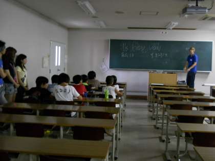 7月29日と30日の二日間,京都外国語大学で異文化体験教室が行われました。午前は低学年が「韓国」「中国・マカオ」の異文化を午後は高学年が「オーストラリア」「オランダ」「ブラジル」の異文化を体験しました。それぞれの国の先生から国のことや言葉について学習しました。日本とはまた違った異文化を体験できたと思います。