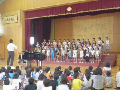 休日参観の3・4校時は,ジョイフルコンサートを行いました。各学年が音楽の学習やジョイフルタイムの成果を発揮し,美しい演奏が体育館中に響いていました。暑い中でしたが,鑑賞態度もよく,保護者の方々のあたたかい拍手もあり,とてもよい会になりました。本当にありがとうございました。