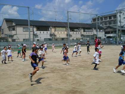 8月17日(火)から20日(金)まで京都外国語大学主催のスポーツ体験教室がありました。1日目はサッカーでした。40度近いグラウンドでしたが,元気に楽しくサッカーを楽しみました。3日目のテニスも,一人一人がラケットを持ち,ボール慣れから始まり,ボールを打つことも出来るようになりました。