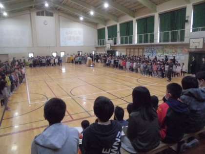 児童会が中心となって,3・4校時に6年生を送る会を行いました。全校で6年生の思い出をふり返ると共に,クイズをみんなで楽しみました。1〜5年生からの歌のプレゼントと,6年生のリコーダー演奏のお返しは感動的でした。全校で卒業を祝うことの素晴らしさを感じることができました。