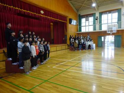 学習発表会に向けて体育館練習を始めました。