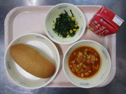 給食には、金時豆・黒豆・大豆・手ぼう豆が