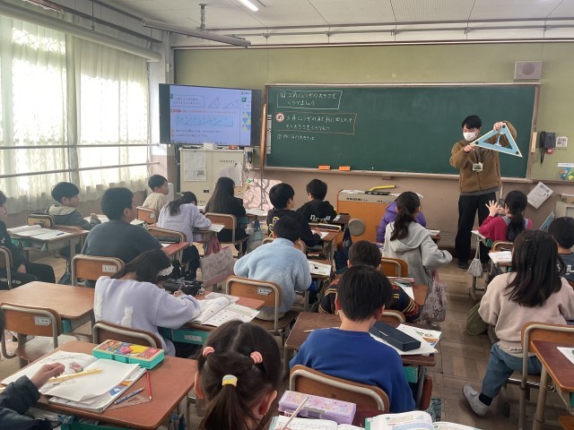先生の大きな三角定規も、子どもの三角定規も角の大きさが