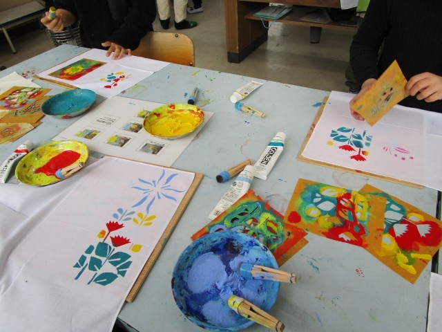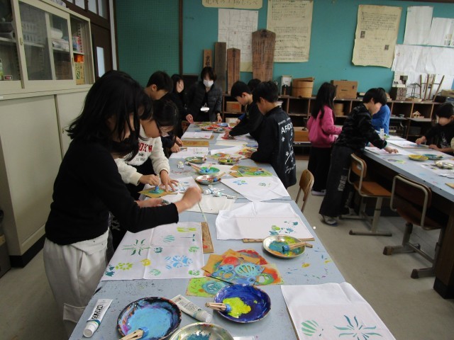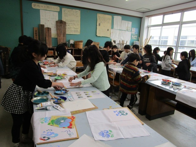 地域の染物職人の方に来ていただき、京友禅の歴史や、